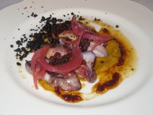 I was very excited to see how the menu would evolve by the time I showed up last night. A few things were similar; the scallops, squid, foie gras beignet, the cheese tart and chocolate mousse. Last night’s menu had 14 items versus the 12 items I tried two weeks ago.