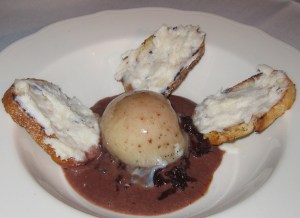 Absolutely wonderful and a great starter. I loved the symphony of flavors from the good fish, the creamy sushi rice ice cream, the salty soy and the explosive ginger. I have read that Ludo brought this back from his Bastide days and I’m very glad he did. $16
