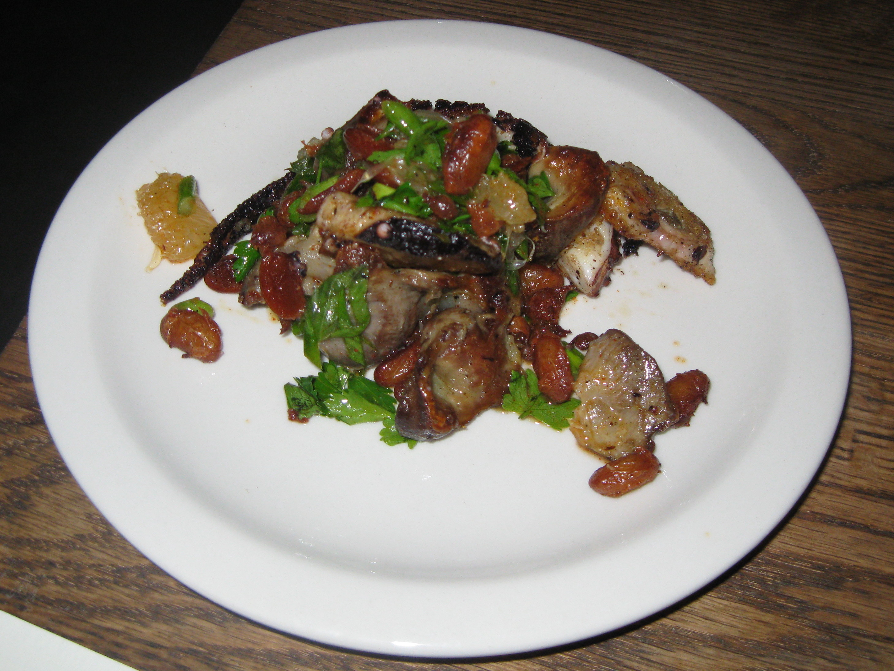 The octopus with gizzards and lemon was my favorite dish of the night. I’ve had better octopus but this was pretty good. Actually, the gizzards were better in this dish. Where did they find such plump gizzards? Some may find the octopus to be a little too grilled as it lacked the creaminess of some grilled octopus I’ve had in the past (perhaps they could marinate it in olive oil?). The citrus really worked well with this dish.