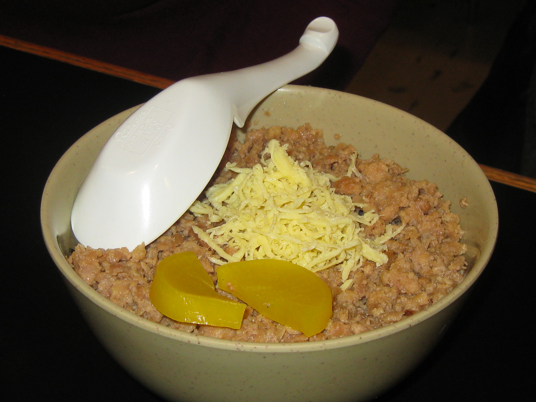 I had a bite, it was well, ground chicken atop a bowl of rice. It did come with miso soup (not shown). The guy who ordered it said it was good but he didn’t seem satisfied so he ordered another two appetizers.