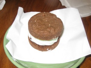 I chose the mint brownie cookie sandwich. I have to admit, I didn’t like it as much as say a cupcake. I expected the cookie to be softer and it was very hard, almost like a biscuit but I suppose that’s what tea is for!