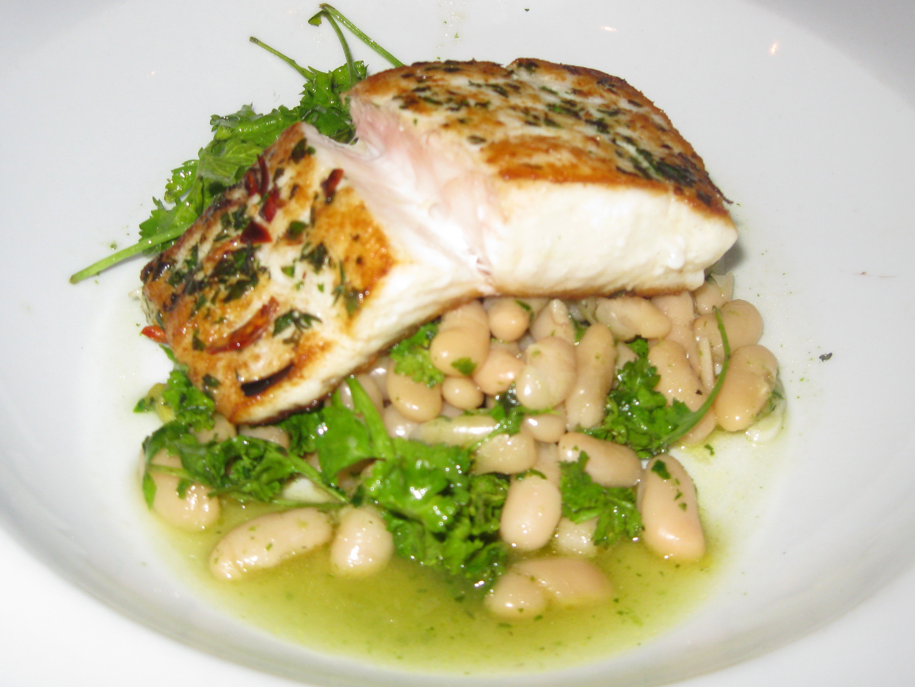 Hungry Hippo’s fish was much better. That night’s daily fish was halibut served with beans and olives. She requested no olives and they accommodated her easily.