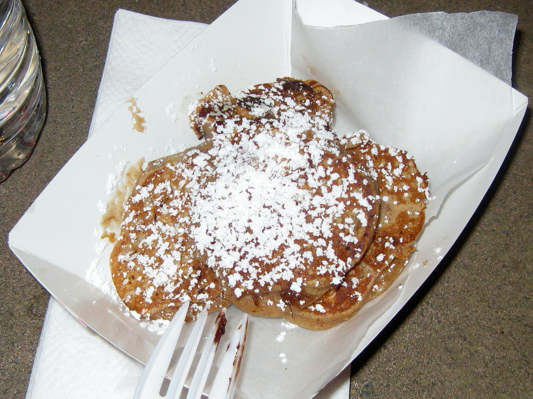 Well, for someone who hates pancakes, I enjoyed these. I thought the powdered sugar gave it enough sweetness and so I skipped the syrup. And they were more on the banana side with a pop of peanut butter every now and then. Just perfect. You got at least 6 of ’em for the $5. I also sampled my friend’s chocolate chip pancake bites and I preferred mine. I did overhear someone who got the red velvet pancake bites proclaim hers to be better than sex. Damnit, I need se… I mean, red velvet pancake bites now. Oh well, next time!