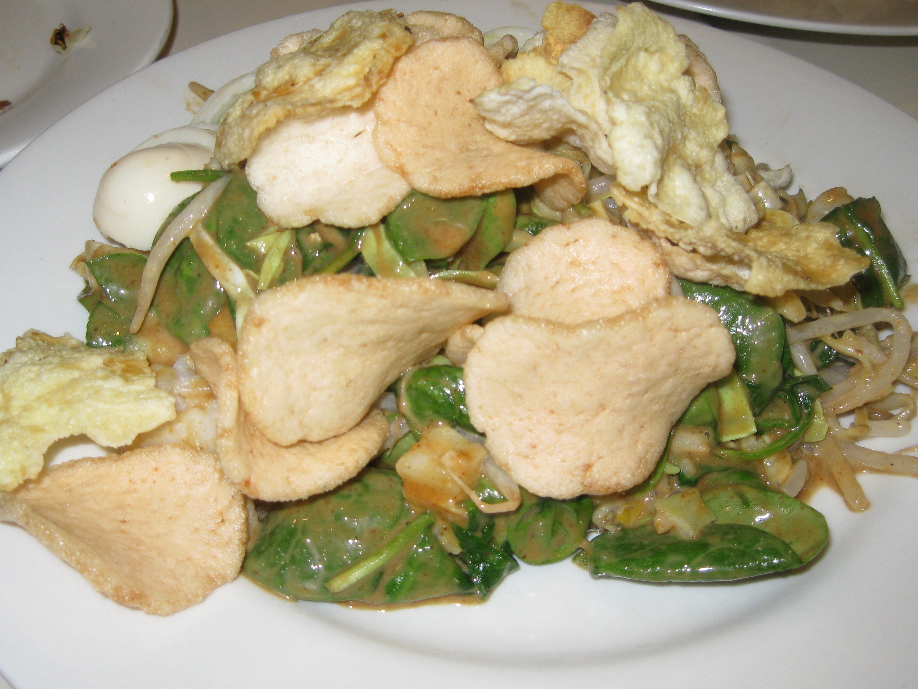 I was swayed by some reviews that this was a marvelous soup to try. Once tasting it, I realized it wasn’t very thick and though the shrimp were fresh, it wasn’t interesting over-all. The taste reminded me of Malaysia rather than Indonesia.The noodles were terriblely overcooked in this dish.