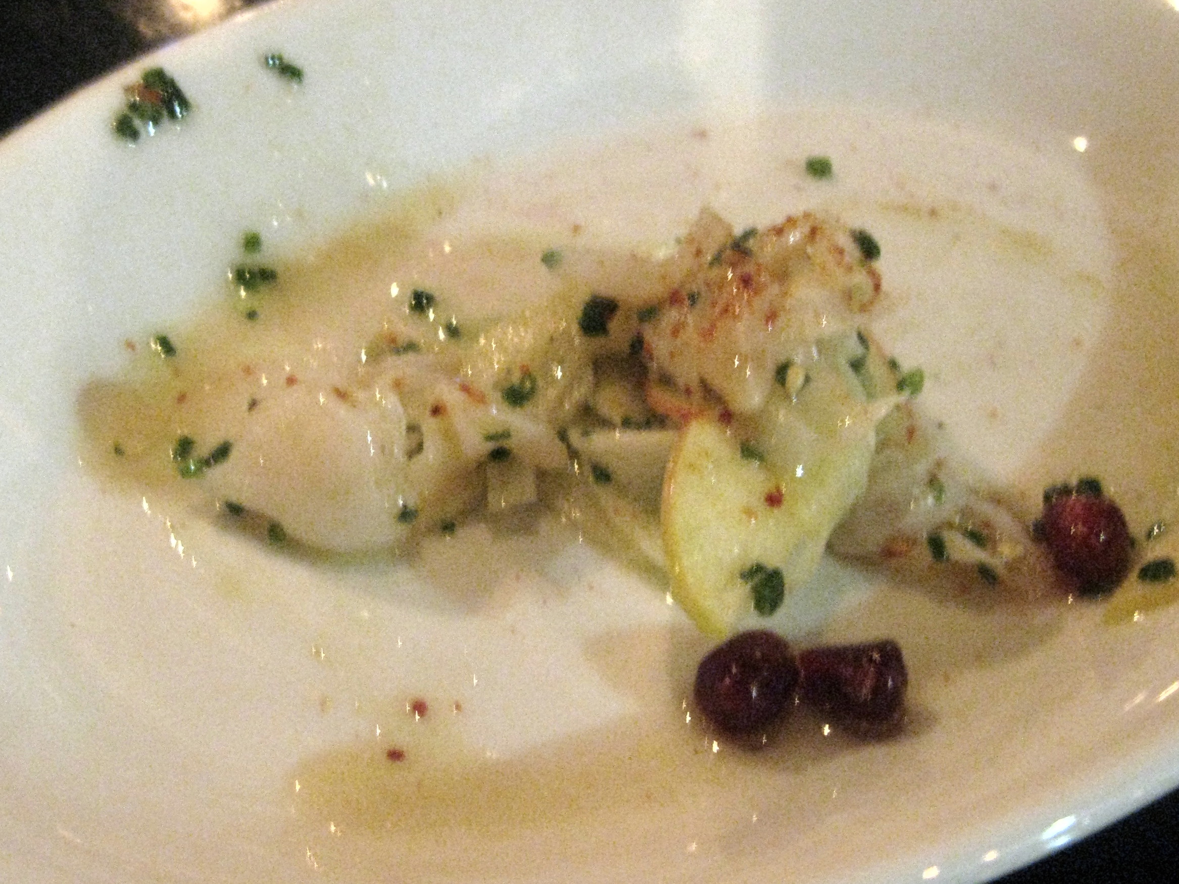 AKesq and Carina of the Uncouthgourmands asked if the chef (I love Josef Centeno and have followed him for years starting from Opus) would serve the razor clam raw. At first he wouldn’t because he thought it’d be too tough but then he spun out this marvelous ceviche tasting of a yuzu marinade.
