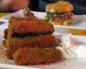 I eat zucchini fries anytime I see ’em! These were better than the onion rings which were beautiful but barely any onion.