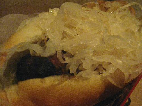 While in line, I chatted with a Wurstkuche worker who recommended grilled onions and sweet peppers to go with this porky sausage. It was indeed very good.