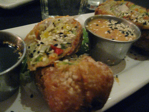 When we arrived, there were already a ton of appetizers out including portabello fries, tataki nachos, potstickers and more. It was great to see Caroline on Crack and Mar and Kelly from Citysearch.