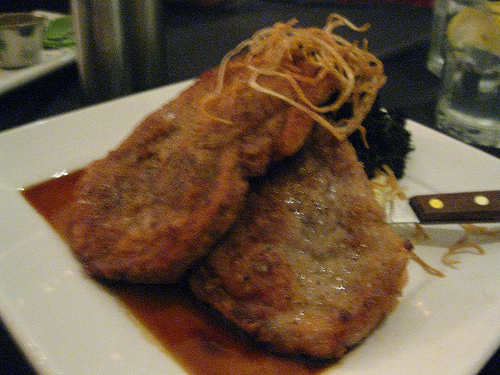 I was so full from the apps that I thought I shouldn’t eat anymore but I couldn’t help but order an entree along with everyone else. I spotted the salt and pepper pork chops and knew that was my choice. I was laughing when almost everyone ordered the salmon salad.