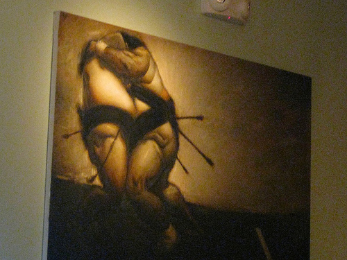 This painting at Daisy Mint has always fascinated me. Two sumos battling to the death? But who shot them with the arrows?