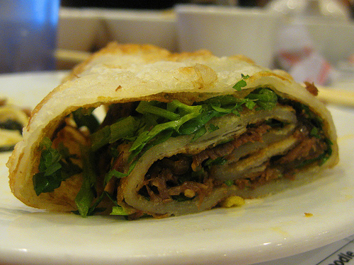 I wasn’t really digging how flat these were looking but I did like the fresh veggies in it. The beef was a bit on the drier side. I would return to check out their other stuffed pancakes. Who knew there’s more to life than beef rolls?