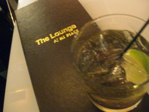 On Monday nights, they offer all night happy hour with $5 cocktails and half-priced bar food beginning at 6 p.m. I recently visited the lounge for the first time around New Year’s and didn’t care for my drink so I ordered a Moscow Mule with Vox. The cocktail waitress said, “Vodka and ginger? Do you want it mixed?” Um, yes.