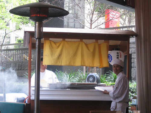 The night wasn’t too cold yet but the heat lamps were on full blast. That heat combined with the smoke from the yakitori grill was a bit unpleasant. I think when it gets more towards summer, it’ll be appreciated more.
