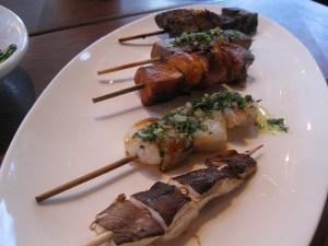 The Vixen and I share a similar philosophy to happy hour, order it all. We tried the beef, beef tongue, chicken, shrimp and mushroom. We favored the beef and tongue. I liked the shrimp but felt the chicken was underdone. The mushroom wasn’t worth the $2 a skewer.