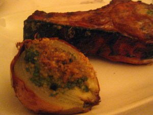 The braised lamb shank was enormous! That and the liver compared to the tiny portion of the pot roast had me raising my eyebrows (in a squiggly Minty fashion). All were good but I was very pleased after taking a bite out of my char siu porkchop. It was a last minute decision for me. While I love porkchops, I tend to be disappointed half the time and vow to make a better chop at home. Jar came through for me and I would order this again. I also really liked the half of an onion that came with the dish.