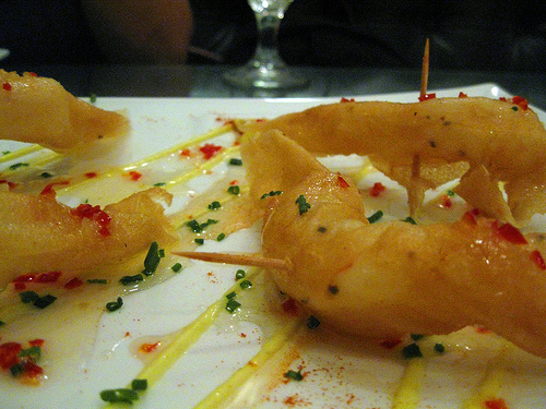 Last Wednesday, I grabbed a couple of people and we headed over to the beautiful space where even the tables, walls and menu subtly remind you to get the caviar. My friend wanted to try the Caviar Surprise but I knew exactly what we wanted. The three of us ended up sharing 7 things and Chef Ben sent out dessert for us.