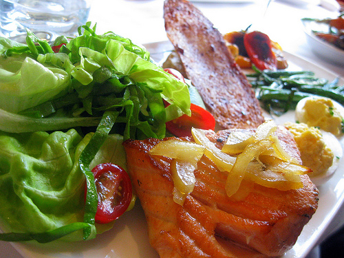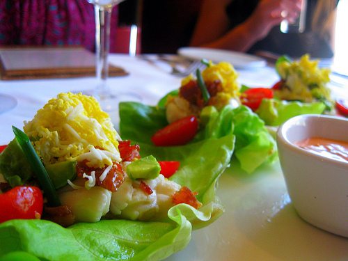 I have admit although I love meat, I really love my seafood. The sole was interesting with the bits of jalepeno to add flavor to the delicate fish. Andee of LA Easy Meals mentions she would probably provide sauce on the side for those who want to control their calories. I say opt for the Salmon Nicoise if you want to go lighter. The deconstructed salad had both flavor and enough components to keep it interesting.