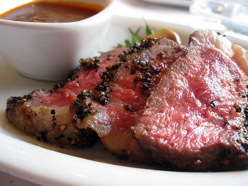 Don’t mind me, I’m just drooling over my own pictures and memories of this fantastic steak. This steak is pan-seared on one side with black and white peppercorns then served with their F17 sauce which features 17 ingredients. The steak is delicious on its own but with the sauce, it took off (much like a jet plane which the sauce’s name reminded me of).