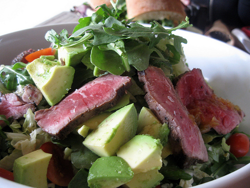 What was amazing to me was the attention to detail. My avocado chunks were perfect, not a black spot on any of them. And I loved the sprinkle of kosher salt on the steak. The dressing was light and perfect.