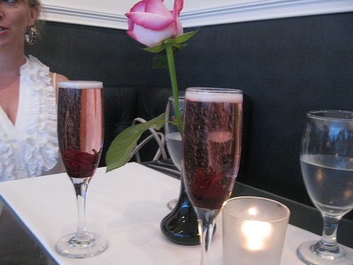 The Vixen and I finally celebrated our successful Sexy Singles’ Soiree with dinner at Petrossian a couple of weeks back. On my first trip to Petrossian, I didn’t know about their delicious hibiscus champagne cocktails so I was sure to order one this time around. They are just so beautiful.