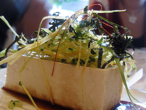 We also ordered all the appetizers, doubling up on the pork feet gyoza. I would skip the cold tofu next time. It wasn’t silky like some cold tofu appetizers I’ve had in the past. I thought the soy dipping sauce was almost too salty and preferred to eat the gyoza plain. While the experience was novel (pork feet), I would also skip these in favor of ordering Breadbar’s desserts to take to-go.