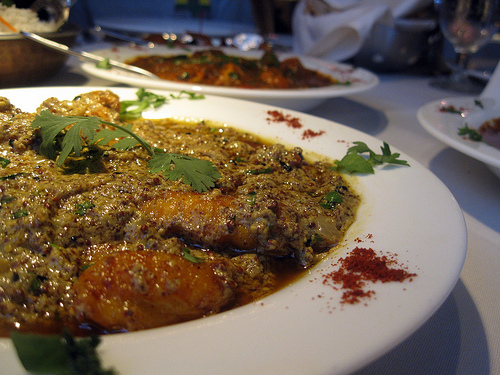 Arun mentioned that Royal Khyber only used spicy green chilis and these controlled the level of spice in the dish. You can always ask for less spice– or more!
