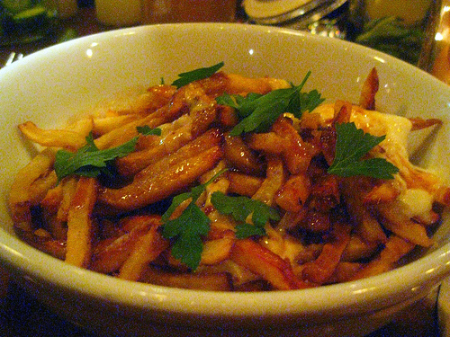 Poutine is on the bar menu. But you can probably ask for it at the regular table?