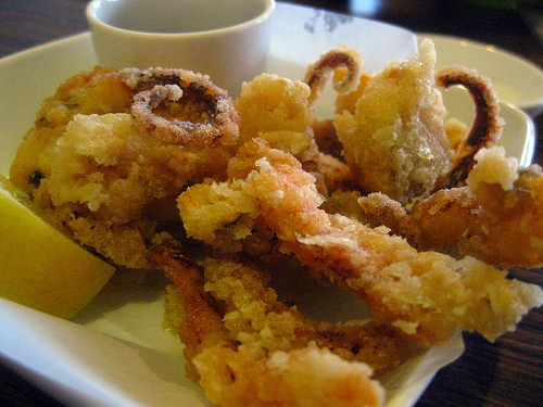 Oba also has izakaya options. I ordered the shishito peppers and ikageso kaarage to start. The shishito peppers featured the largest bonito flakes I’ve ever seen. The kaarage though didn’t seem fried enough and the legs were a bit “floury.”