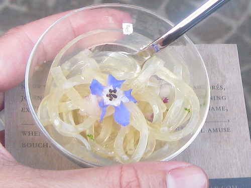 Having just gone to Melisse, I was interested in seeing what Chef Josiah would bring to the table (so to speak). He brought a great fish which was moist and flavorful. I saw what they were cooking on, literally make-shift stove tops. How did they do that? How did they keep the skin so crisp?