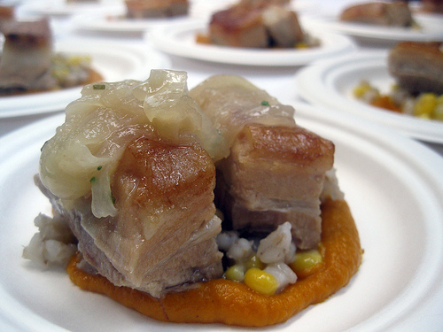 As much as I really enjoyed Taste of the Nation and the block party for Concern Foundation, this event was more my style. Less vendors, less people, and a slower pace overall. To watch Hatfield’s plate or any of the other chefs was like watching a dance. A slow, deliberate, carefully paced dance. First the puree, then the grains, then the pork belly, then a bit of salt, then the onions. During this time, I watched someone sneak in and grab a plate before the pork belly was placed. They were vegetarian. I had a moment with Chef Quinn as we shook our heads over those vegs.