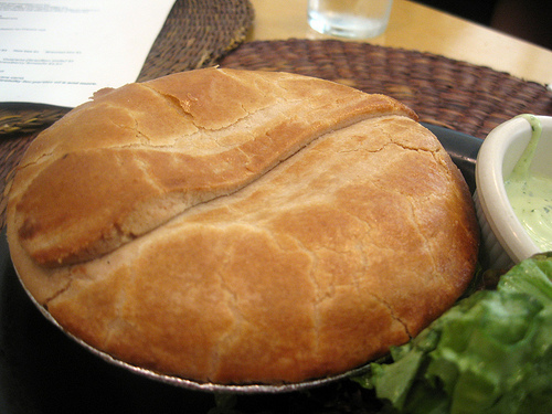 I don’t know how it came to be that Wood Spoon became known for their chicken pot pie which has hearts of palm, corn and olives in it but what initially seemed like a small pie seemed to grow and 3 people couldn’t even finish it. I adored the “wood spoon” shape on top of the crust.