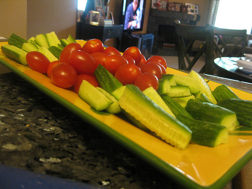I asked a guest to bring hummus for the veggie tray I set out and started cooking. It took me about 3 hours of prep and actual cooking time to whip up this dinner for 5. Ideally, I would have liked to be able to serve the food right away but I didn’t want to still be cooking when guests arrived some some things had to be kept warm in the oven.