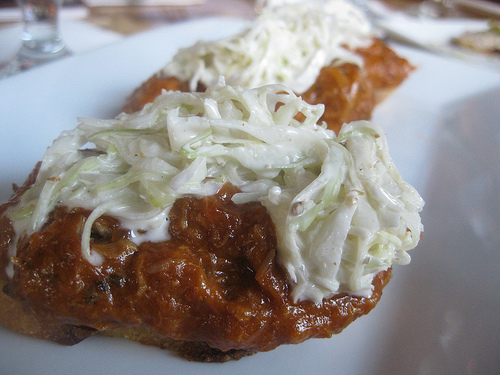 The rillette already came pre-slathered on toast points. I liked it well enough. Let’s face it, it’s $2. Some of my group did think it tasted more like tuna than pork.
