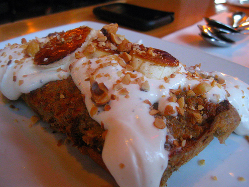 I was at a wine tasting at Corkbar once and everyone raved about their bread pudding. I almost felt this was more cake than bread pudding. I loved the slightly spiced cream fraiche on it.