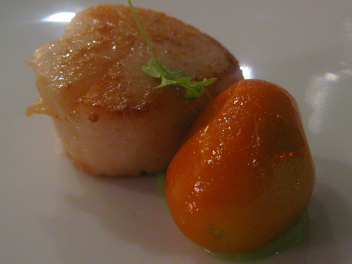 scallop. broccoli. kumquat. chervil.