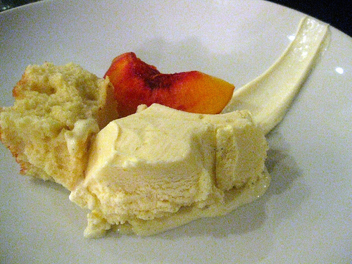 cupcake ice cream. cream cheese pound cake. compressed peach. creme fraiche cream cheese frosting