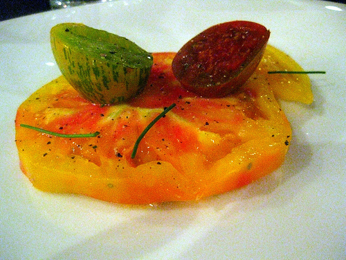 Craig is from Arizona but he explained his grandmother is from the South. Some Southerners swear by pimento cheese and it is supposedly delicious. It looked nothing like that horrific stuff you find at groceries here. Proper pimento cheese needs to be made by Southerners or at least Southerners at heart. This stuff was yummy! And the heirloom tomatoes were perfect. Craig said he picked the tomatoes himself, looking for uniformity. It was just something kind of crazy about that. Yes, I imagined many chefs do that (hence the popularity of farmers market driven menus) but I never get to talk to these chefs about it. This guy picked these tomatoes and hours later, sliced them for us. Yeah, maybe you’re not blown away by that but I was. Shopping, prep and cooking. All done by Craig. He has some help but it’s all him generally.
