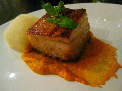 pork belly. kimchi puree. asian pear. pennyroyal.