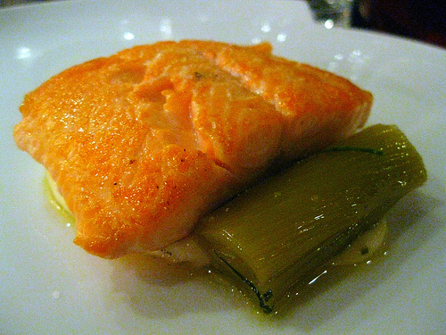 arctic char. potato puree. braised leek.