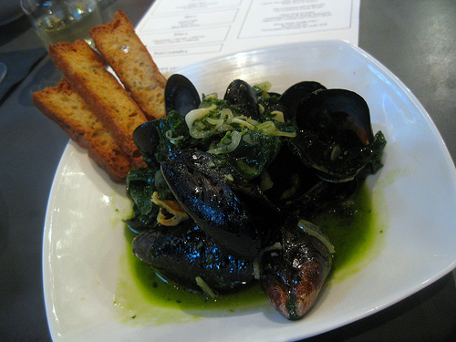 I had a couple of well vodka tonics and they were the proper VTs that I loved. The right amount of tonic and definitely the right amount of vodka. They washed down these slightly too salty mussels very well. I loved that there was spinach in this dish. Too often do you go to happy hour and leave without eating any veggies.