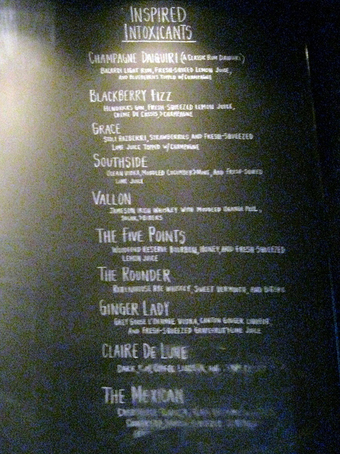 Our server mentioned $4 wells and before I could really study the Inspired Intoxicants, the cocktail menu, I blurted out, “a vodka tonic, please.” I sucked that down fairly quickly and signaled another. Next time I’ll try the signature cocktails discounted to $7. The Fallon, Five Points and Rounder were my picks based on their whiskey nature.