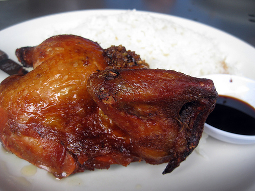After carefully removing the golden skin of my Cornish game hen, I dipped it into the dark soy and ate it with the oily rice (apparently it was the same rice as the Hainanese Chicken and Rice). Which then gave me the idea of nabbing the sauce which I’ve determined is why people eat boiled chicken and rice to eat with my own Cornish game hen. Savoy gives you two cups of sauce to refill your dinky condiment dishes, removing the extra sauce when someone calls for more which invariably someone will.