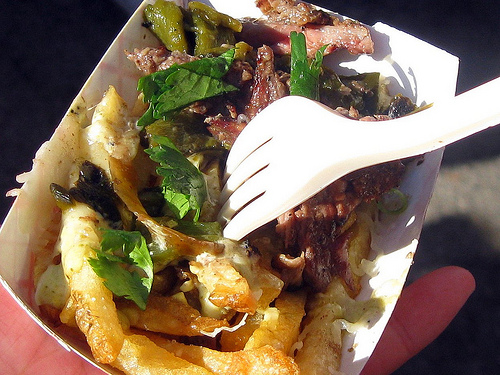 Dim Sum Truck brought out their har gow and shu mai for the taste. Their full menu was also available. I also sampled the fries from Frysmith. I’ll have to seek this truck out again. I expected something a bit more amazing that chopped beef on fries. Hey, I like carne asada fries as much as the next person but probably more so with guac and salsa. As crazy as it was, the line for Lardon hid Komodo and I managed to score these chicken tacos relatively easily. I’m not sure how I feel about the rice though. Nice presentation but unnecessary carbo loading?