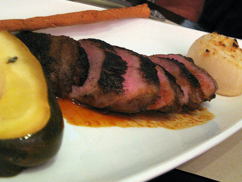 For the appetizers we had a choice of the fall vegetable carpaccio, mac and cheese and fried green tomato salad. We got the fried green tomato salad and the mac. The salad was really good. The green tomatoes weren’t greasy and we easily demolished it. The mac and cheese with housemade ricotta wasn’t really a mac and cheese to me. It was more like a pasta tossed with the ricotta. It was fine if you thought of it as pasta but if you want a baked mac, this wasn’t as good as the mac and cheese I had earlier in the week. Still, it was rich, creamy and quite nice.