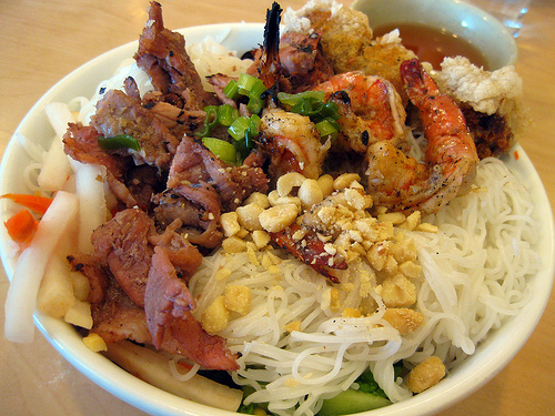 In high school, I had my first bowl of bun mi. I loved the combination of pork, shrimp and eggroll. For the most part, if I can’t find this particular combo, I ask for an eggroll. The ones at Pho So 1 in Reseda were very blistered looking which meat a great eggroll that wasn’t greasy.