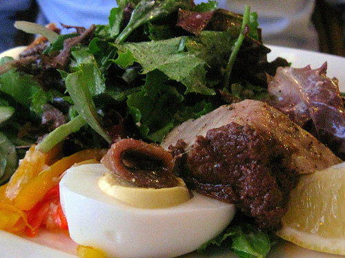 This is what the Gay Boyfriend told me one Sunday evening. After going back and forth, we ended up at Little Next Door where I seem to always end up whenever I’m in that area. I can’t help myself, I like French food. Little Next Door has a 3-course prix fixe menu though I later found out they were also doing dineLA. I opted to get the prix fixe while I recommended the Gay Boyfriend get the Nicoise Salad.