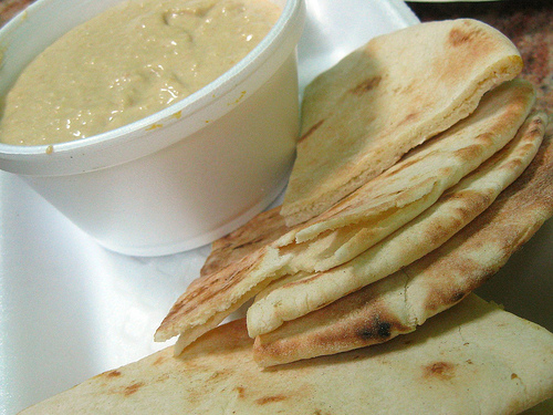 The hummus was incredibly garlicky. We couldn’t stop eating it until the damn thing was all gone. The fluffy pita helped.