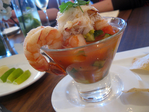 We started off with the Shrimp Avalon which was very much like a ceviche with Dungeness crab and chilled tiger shrimp. There were some nice fresh veggies as well. We enjoyed the Avalon with house-made chips.