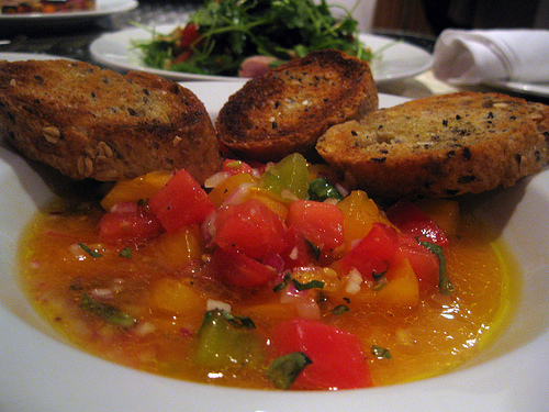 I also didn’t try the salmon salad though it looked great with the farmers’ market peaches and bleu cheese. I was indulging in the bruschetta and the olive oil poached tuna salad instead with the fennel, cherry tomatoes, olives (kind of reminded me of a nicoise salad in a way). I wish I had tried the ceviche which was an explosion of color but I was trying to save room for dinner.