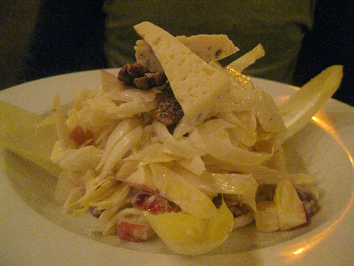 I found myself in Silver Lake for dinner a couple times in the past week or so. Once I mentioned Dusty’s had poutine, the gay boyfriend was all over it. He had that along with their salad of the day, a Waldorf made with endive.